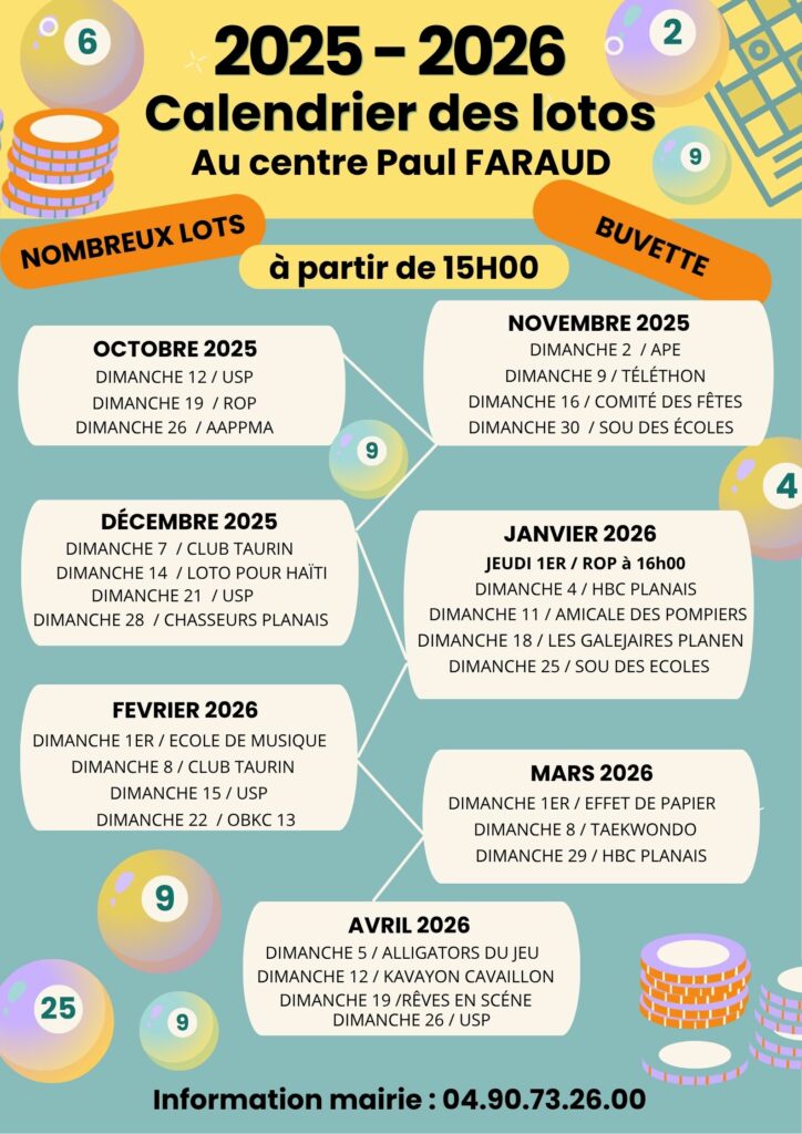 Vous trouverez ci-dessous le calendrier des lotos à venir !