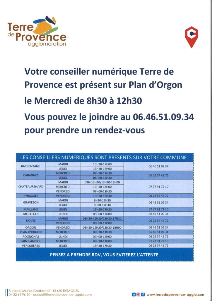 Si vous n’avez pas la possibilité de vous rendre à PLAN D’ORGON, n’hésitez pas à vous rendre sur un autre point de permanence sur le territoire (voir tableau ci-joint).
