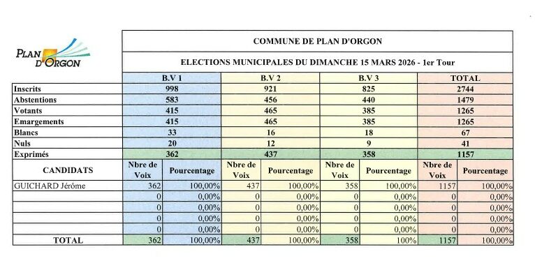 Elections municipales : résultats du 1er tour par Communication Jérôme GUICHARD élu au 1er tour des élections municipales le 15 mars 2026